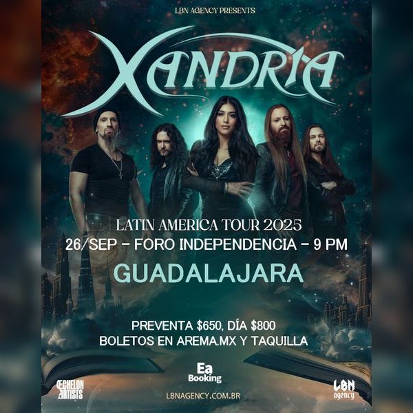 La banda icono del metal sinfonico aleman, Xandria, sorprendio con su mas potente material el año pasado, The Wonders still awaiting con la incorporacion de la fantastica Ambre Vourvahis cuyos rangos y alcance son una agradable sorpresa, salen de gira mundial este 2025 en promocion de su mas nuevo material Universal Tales. La banda establecida como tal en 1999 baja la direccion de Marco Heubaum proyecta una intensidad que no te puedes perder.