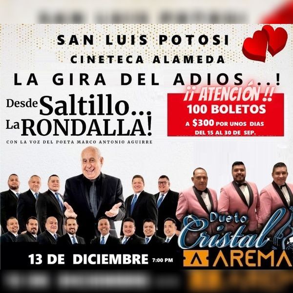 ¡Desde Saltillo La Rondalla! ¡La gira del Adiós! alternando con el Dueto Cristal! FINURA TOTAL DEL REQUINTO!