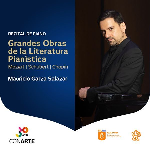 Escena CONARTE | Música 2025 se complace en presentar al pianista Mauricio Garza Salazar en “Grandes Obras de la Literatura Pianística”. Celebrando la belleza y el arte del piano clásico, cobrará vida la música de W.A. Mozart, F. Schubert, F. Chopin y del destacado compositor mexicano R. Castro. Una experiencia musical llena de expresividad, ideal para quienes desean disfrutar la profundidad y riqueza del repertorio pianístico. Mauricio Garza, con más de 30 años de trayectoria artística que lo han llevado a escenarios en América, Europa, Oceanía y Asia, formado en instituciones de alto prestigio como la Universidad de Música y Arte Dramático de Viena, ha sido solista con importantes orquestas y se desarrolla activamente como recitalista, maestro y jurado en concursos internacionales. Su versatilidad y solidez interpretativa lo han consolidado como una figura destacada del piano mexicano con proyección global.
