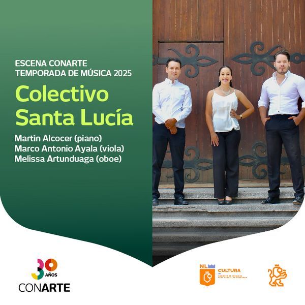 Escena CONARTE y su Temporada de Música 2025 presenta “Colectivo Santa Lucía”, Trío de cámara integrado por piano, viola y oboe, una combinación instrumental poco común que ofrece una sonoridad única y profundamente expresiva. Repertorio cuyo eje central es el Romanticismo alemán y ruso del siglo XIX, con obras de compositores como Beethoven, Schumann, Glinka y Glazunov entre otros. Conjunto liderado por Martín Alcocer al piano, participan también Marco Antonio Ayala Parra, violista, y Melissa Artunduaga, oboista.