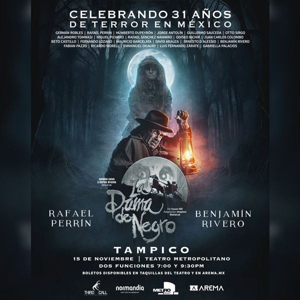 Adéntrate en este clásico del terror británico de Susan Hill donde el público presente voluntariamente o no, forma parte esencial de esta puesta en escena y es transportado a la primera década del año 1900 donde acontecieron los terribles eventos que desató el oscuro espíritu de una mujer sedienta de venganza donde cobró la vida de cientos de niños en un pequeño pueblo inglés y marcó las vidas de decenas de familias atormentadas por la fuerza de esta mujer que no piensa detenerse jamás. Han pasado treinta años y en este tiempo ella sólo se ha hecho más fuerte. Con el maestro del terror Rafael Perrín y Benjamín Rivero.