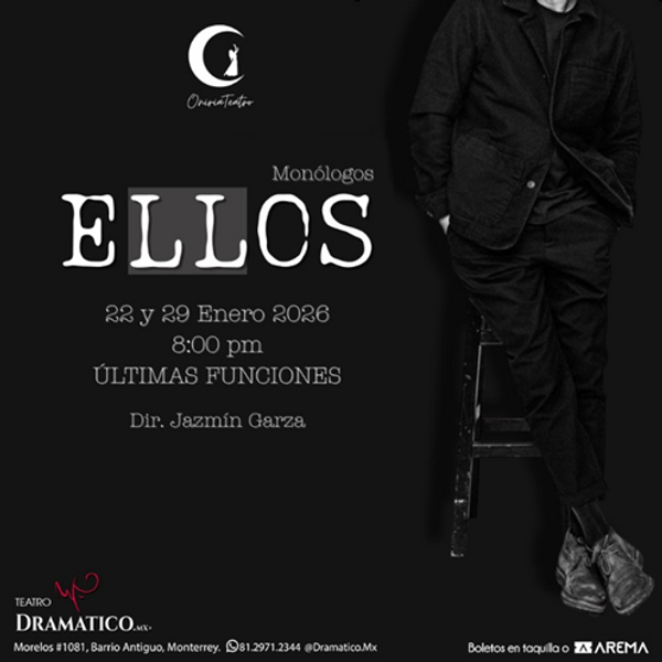 Ellos, Una serie de monólogos basados en historias reales que revelan el lado más humano de hombres que se atreven a hablar sin máscaras. Relatos íntimos sobre emociones, vínculos, heridas y afectos que rara vez encuentran espacio para ser nombrados. Una experiencia teatral honesta y conmovedora que invita a escuchar, sentir y reconocernos en la vulnerabilidad compartida