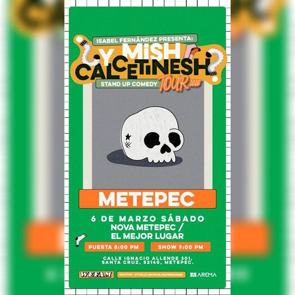 Nos pueden pasar cosas buenas, malas o hasta a veces inexplicables, pero las risas los transforman todo. Un show divertido, con mucho humor negro hecho con el único objetivo de que te rías conmigo de las cosas que vivimos todos. ¿Y Mish Calcetinesh? es un show en el que la moraleja es, \\\\\\"Na mas no te aburras, porfa\\\\\\\".