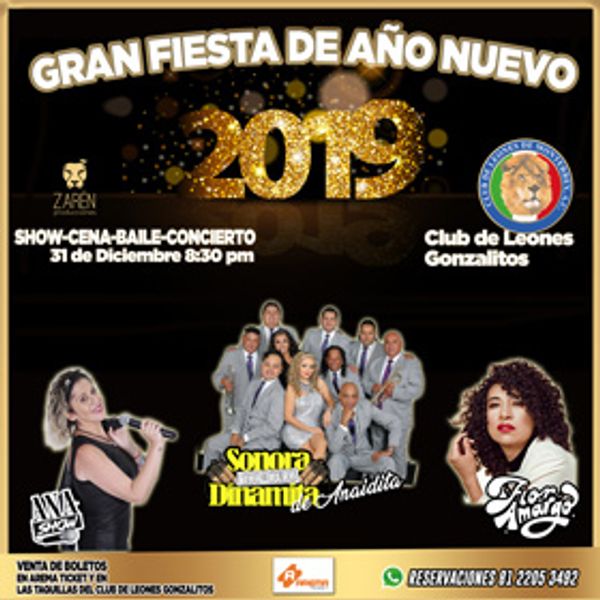 Disfruta de las melodías más bailables con la Sonora 100% puro Dinamita de Anaidita!; que pondrán a bailar a todo mundo!!. Al llegar media noche comeremos las 12 uvas y brindaremos la entrada de un nuevo año!!. Y para cerrar con broche de oro el evento!; un concierto de la Artista más espectacular y del momento en Mexico!...Flor Amargo!!! Los contrastes de emociones que acostumbra transmitirnos harán que la pases increíble!, con toda la energía que la caracteriza, y la mejor música para disfrutar de una velada perfecta!!. De los mejores conciertos que vivirás!!. De niños hasta adultos mayores la disfrutarán mucho!!