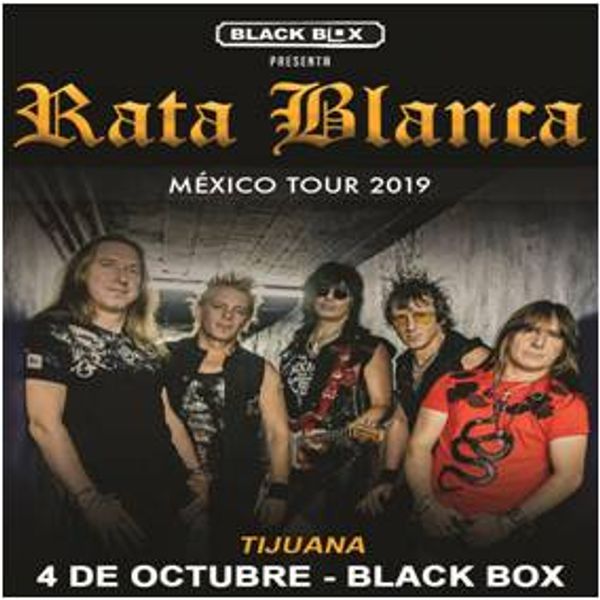 Rata Blanca regresa con el poder de 1000 rayos para dar en todo\nMexico y porsupuesto que en Tijuana su mas grande concierto hasta ahora, vive\ncon Walter, Adrian, Danilo, Fernando y Pablo una noche de descargas de energia\ny magia como nunca antes, los creadores de la musica que va siempre contigo\ncomo Mujer Amante, Aun estas en Mis Sueños, La Leyenda del Hada y el Mago, asi\ncomo de los nuevos clasicos, Rock and Roll Hotel, Los Chicos Solo Quieren Rock\ny Tan Lejos de Aquel Sueño. En Oct 4 2019 en el Black Box, las guitarras sonaran\ny sonaran fuerte. No faltes.