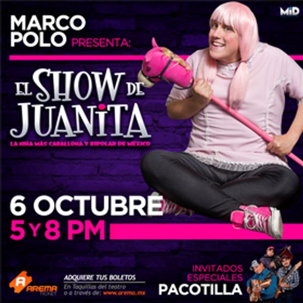 El actor Marco Polo regresa al Teatro de San Nicolás con uno de los personajes más divertidos de la comedia nacional: Juanita, la niña más caballona y bipolar. Un recomendadísimo show que ha hecho reír a muchas ciudades de México, y que sigue cautivando al público con los monólogos e historias de esta niña enorme de 7 años, que en este 2019 presenta su Tour OnFire. Invitado especial: Grupo Pacotilla.