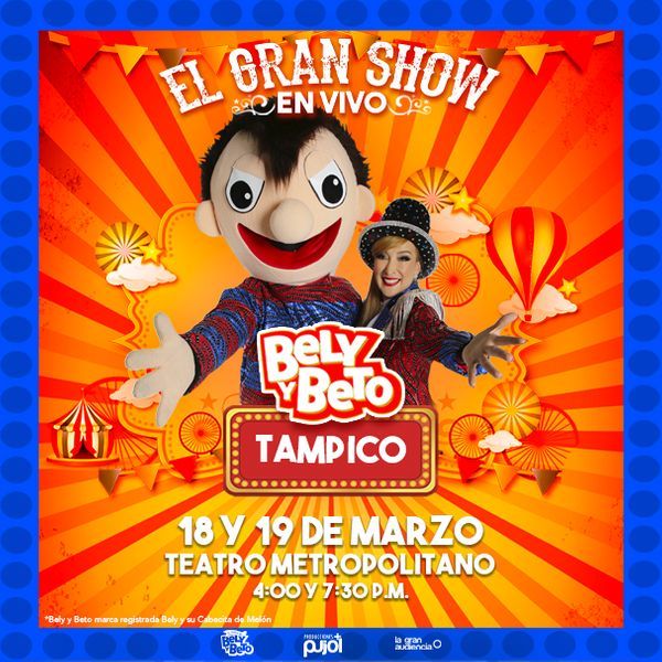 Llega a Tampico, El Gran show en vivo de Bely y Beto. Ven a cantar sus canciones y a sorprenderte con sus aventuras en un show completamente NUEVO, te sorprenderás con todos sus personajes como los viste en youtube.