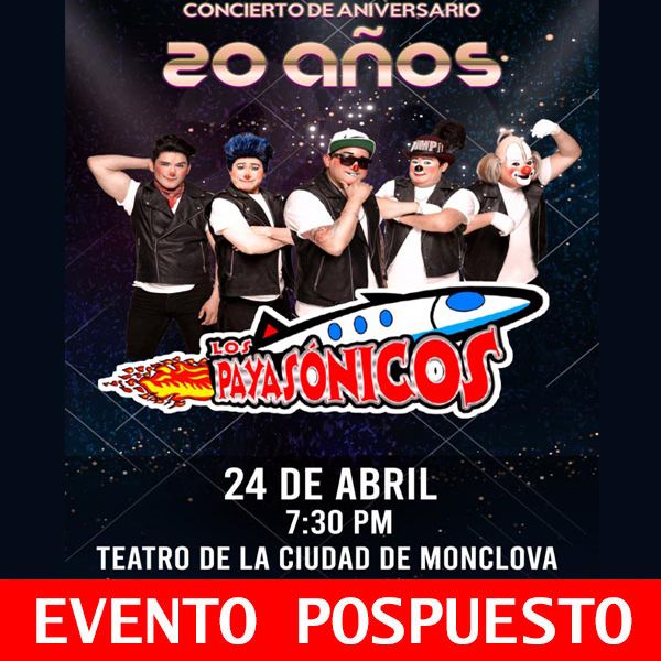 Los Payasónicos ¡en concierto! interpretando todos sus éxitos, todos juntos otra vez: Ratón, Regalito, Pompo, Topillo, Campita y Cybersonica.