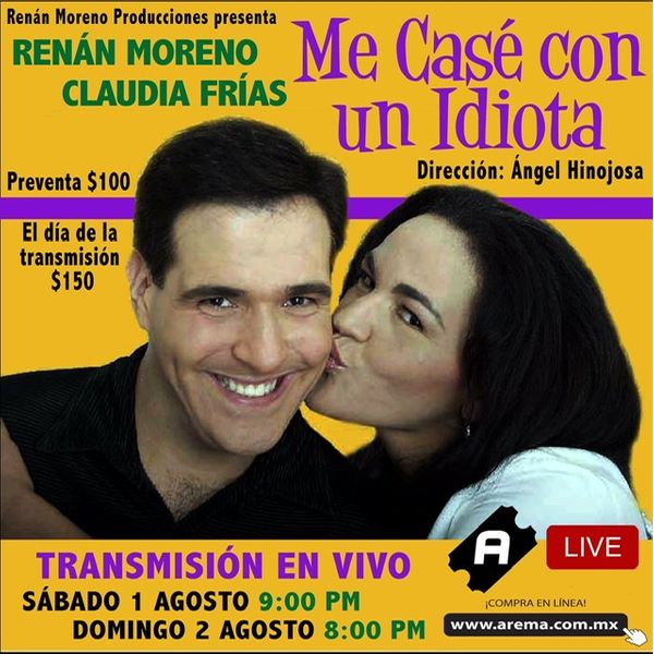 Renán Moreno Producciones presenta ME CASÉ CON UN IDIOTA, una comedia donde se narra, por medio de diversas caracterizaciones, El lucimiento de los actores (Renán Moreno y Claudia Frías) es evidente, ya que cada uno interpreta 10 personajes y se cambian de vestuario en más de 15 ocasiones. Montada en el 2003, logrando más de 800 representaciones.