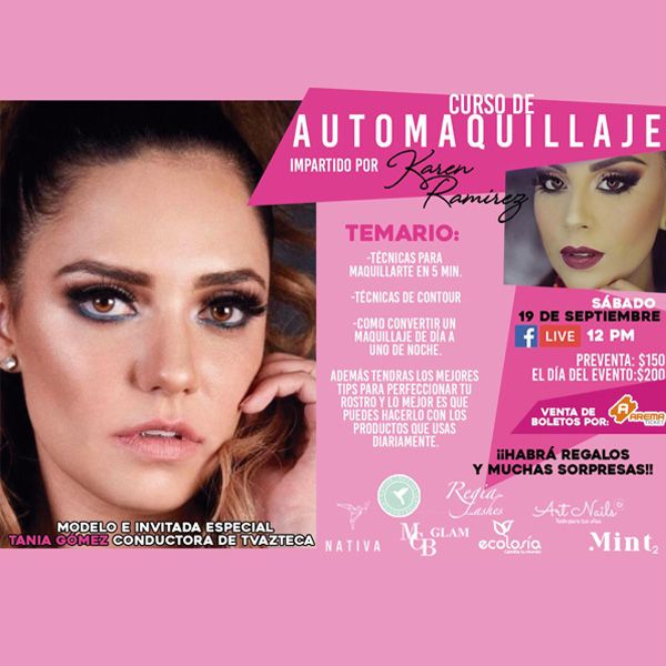 -el curso será impartido por Karen Ramírez, conductora de tv y experta en maquillaje, habrá regalos, y nuestra modelo e invitada especial Tania Gómez conductora de TV Azteca