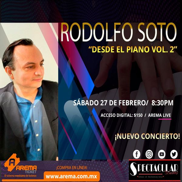Rodolfo Soto interpretará completamente en directo, una colección de éxitos instrumentales del pop de todos los tiempos, música de los artistas de hoy y algunas sorpresas con sus canciones originales. Una transmisión online completamente familiar, que se puede disfrutar solo o acompañado, con la intención de pasar juntos y a distancia una gran experiencia musical.