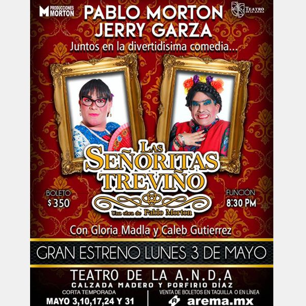 Las tías más famosas del teatro regiomontano regresan con la comedia más exitosa de los últimos años "Las Señoritas Treviño\" Conoce las locuras y peripecias que enfrentan Velia y Simona por conocer el amor de un apuesto hombre.