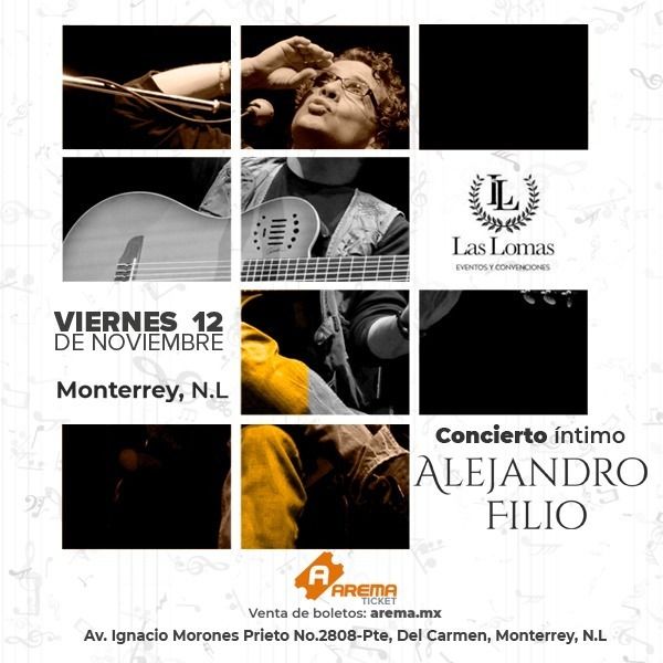 Al fin vuelve a Monterrey Alejandro Filio uno de los trovadores más importantes del habla hispana, nos presentará un concierto íntimo donde nos complacerá con sus mayores éxitos, no te pierdas esta velada llena de canciones y guitarra.
