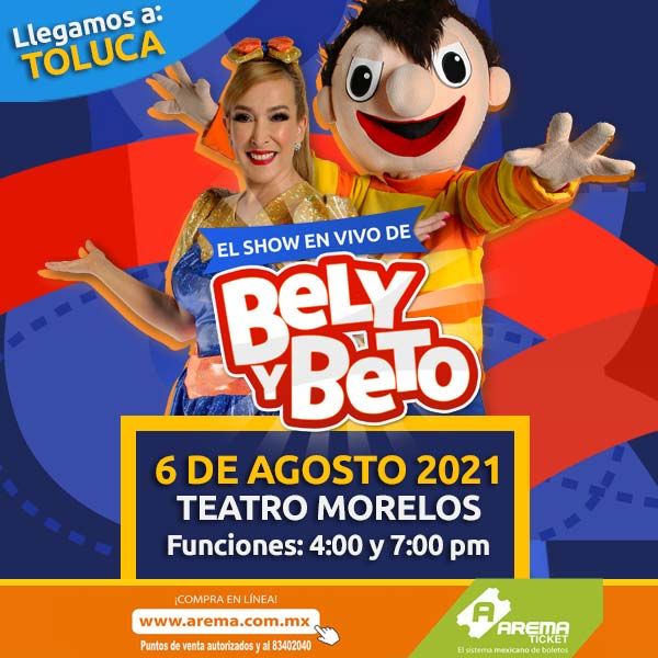 Llega por primera vez a Toluca , El show en vivo de Bely y Beto. Ven a cantar sus canciones y a sorprenderte con sus aventuras en un show completamente familiar, te sorprenderás con todos sus personajes como los viste en youtube.