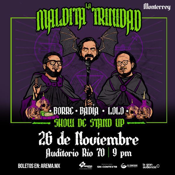 La Maldita trinidad es un show de standup en donde, Eduardo Espinosa, Mario Capistrán y José Antonio Badía, harán cada uno, su peculiar estilo de comedia standup con un espectacular y absurdo show que te hará decir: No sé que acaba de pasar, pero me gustó.