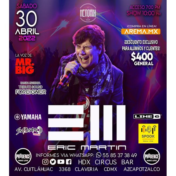 Te esperamos al show eléctrico de Eric Martin (MR. BIG) en Hendrix Circus bar.
