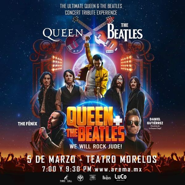 Un Espectáculo Único que conjunta un Concierto en Vivo con un Show Multimedia simultáneamente que te llevará en un Viaje Musical a través de los grandes Éxitos de dos de las más icónicas Bandas del Rock Mundial: Queen y The Beatles.