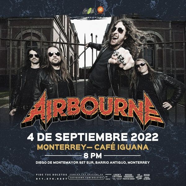 La banda de hard rock Airbourne visita Monterrey y estará presentando su show en Café Iguana. Originarios de Warrnambool, Victoria, Australia, esta banda editó su primer EP en 2004, con el título de Ready to Rock, después de conseguir una consolidada popularidad en su ciudad de origen debido a sus numerosos conciertos en los locales de la zona.