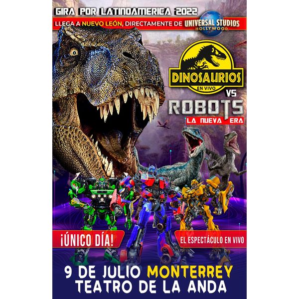 LA ERA JURÁSICA LLEGA AL TEATRO PERO ESO NO ES TODO EL MALÉVOLO DOCTOR RESORTES CREA UNOS MOUNSTROS SORPRENDENTES ROBOTS DEL AÑO 2100 CON DEMASIADA TECNOLOGÍA Y QUIEREN ACABAR CON TODOS LOS ASISTENTES