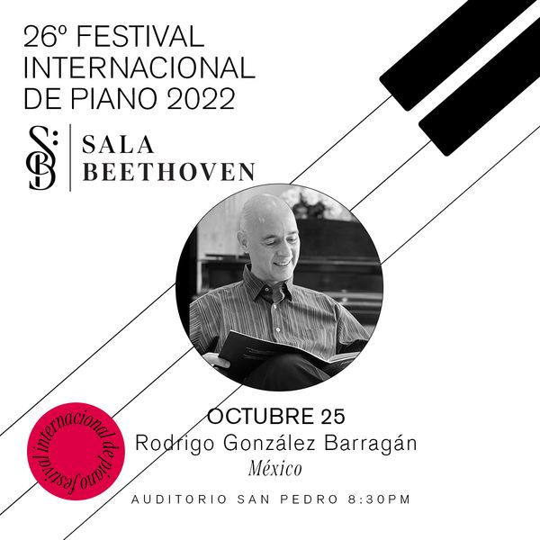 El pianista Rodrigo González Barragán (México) obtuvo su grado de Doctor en Artes Musicales por la Universidad de Texas en Austin, recibiendo siempre becas y distinciones académicas. Ha participado en numerosos recitales y conciertos con orquesta como las Orquestas de La Grande en Oregón, y la Orquesta de Holguín, Matanzas, y Santiago en Cuba. Dirigió su academia “Expresión Musical Artística” y fue catedrático en la Escuela Superior de Música y Danza de Monterrey (ESMDM) y jefe del Área de Piano. Actualmente funge como Vicepresidente del Patronato de la ESMDM y consejero de importantes instituciones culturales en México.