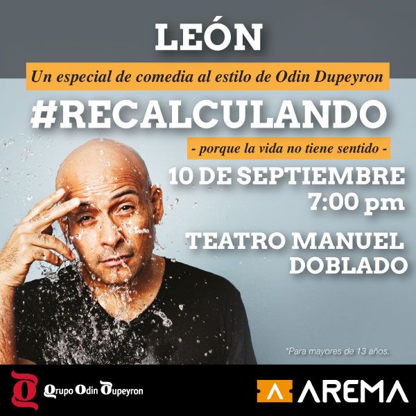 RECALCULANDO es un espectáculo de comedia filosófica muy al estilo de Odin Dupeyron. El cáustico e irónico iconoclasta, satiriza los paradigmas absurdos de la vida y muestra la importancia de enfrentar realidad para sólo así encontrarle sentido. RECALCULANDO es una disertacio´n filoso´fica muy al estilo de comedia de Odin Dupeyron: con altas expectativas de hacerte llorar... de la risa.