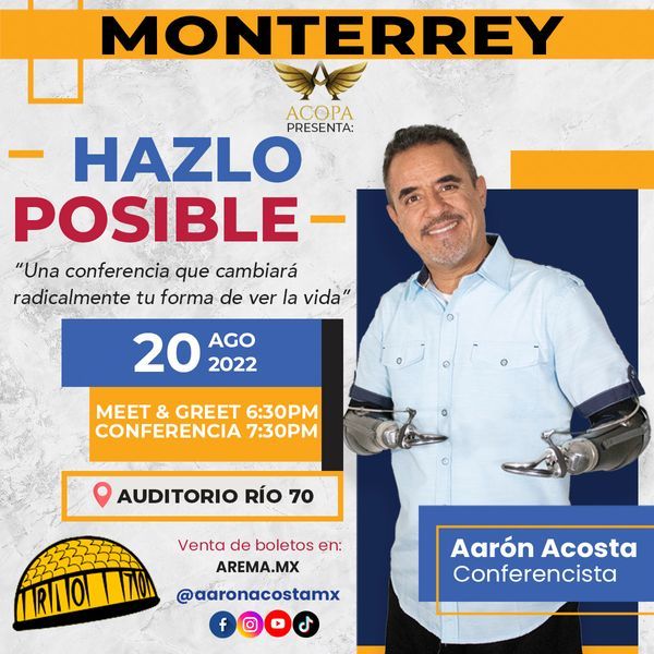 ha aprendido a ver y vivir la vida, demostrando que, cuando tienes la suficiente fe e impregnas de pasión genuina todo lo que haces, grandes cosas comienzas a lograr. Esta experiencia te enseñará a valorar cada pequeña gran cosa que hay en tu vida y te ayudará a descubrir hasta dónde puedes llegar y en qué tipo de persona te puedes convertir, entendiendo que la mejor manera de vivir, es inspirado y alineado con tu propósito. Sin duda que Aarón, nos presenta un testimonio de lucha, de fe y de superación ante la adversidad. Entenderás que Hacerlo Posible no es cuestión de suerte.