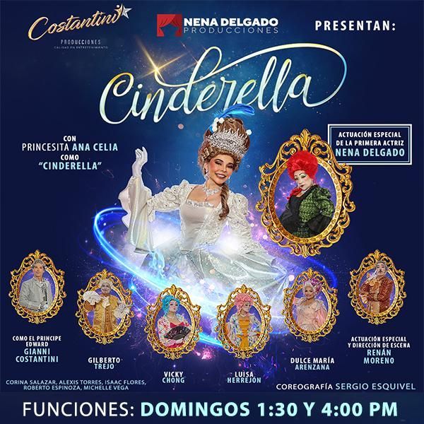 Como Cinderella, la bella princesita Ana Celia quien luchará por alcanzar la felicidad mientras su madrastra, interpretada por la primera actriz Nena Delgado (quien por primera vez incursiona en el teatro infantil) mostrará sus verdaderas intenciones con tal de que Cinderella no realice sus sueños al lado del príncipe Edward, interpretado por Gianni