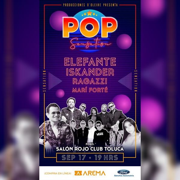 Presenta en un solo concierto a tres grandes artistas de talla nacional e internacional súper consentidos y admirados por sus millones de fans dentro del género de la música pop , el más gigante de ellos dentro de su Gira artística tenemos el gran honor aqui de paso por toluquita la bella y cómo artista principal al grupo ELEFANTE seguido de ISKANDER , RAGAZZI y la hermosa voz de la cantante que se está dando a conocer dentro del género rock en inglés de MARÍ FORTE .