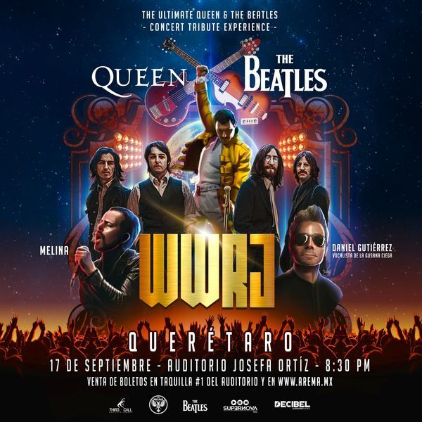 Llega la Gira WE WILL ROCK JUDE a la ciudad de Querétaro con un Espectáculo Único que conjunta un Concierto en Vivo con un Show Multimedia simultáneamente que llevará a los Asistentes en un Viaje Musical a través de los grandes Éxitos de dos de las más grandes Bandas del Rock Mundial: Queen y The Beatles.