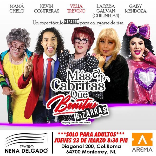 Espectáculo interactivo que no debes perderte si quieres ser más cab...rita con las actuaciones de : Lorena Cortinas, Adriana Díaz. Shiva Ibarra , Elsa Veronica Cavazos y Pablo Morton con su icononico personaje de “Velia Treviño” de Las Señoritas Treviño.