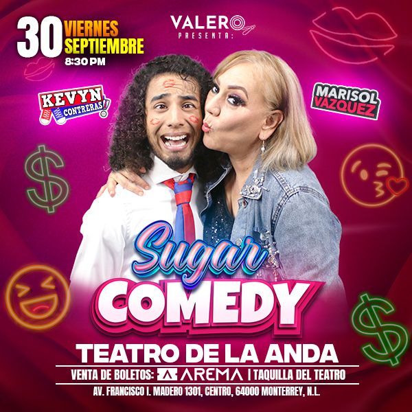 Sugar Comedy es un espectáculo de comedia con la pareja más divertida en redes sociales. Kevyn Contreras y Marisol Vázquez van a divertirte con sus shows.