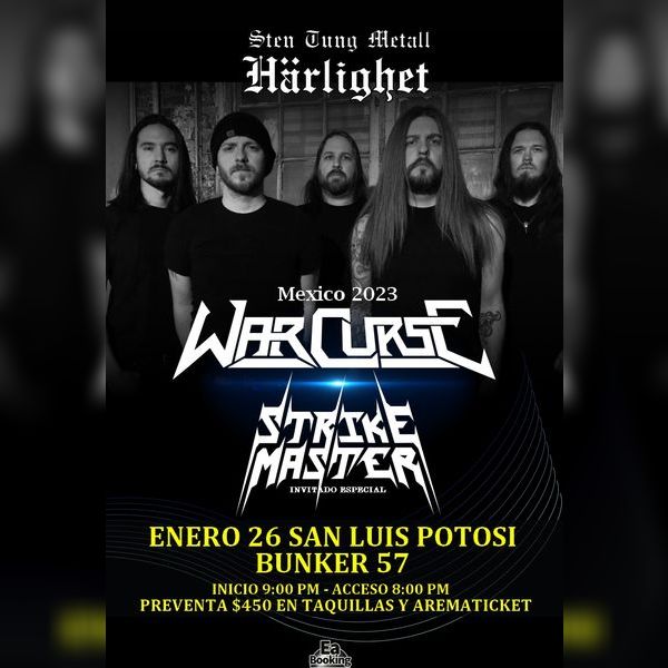 War Curse visita por primera vez Mexico como promocion de su album Eradication uno de los 2 mejores materiales nuevos en todo el mundo justo antes de la pandemia. un thrash metal nuevo, fresco, pero old school, crudo y potente, junto a Strike Master aseguran una gran noche de metal.