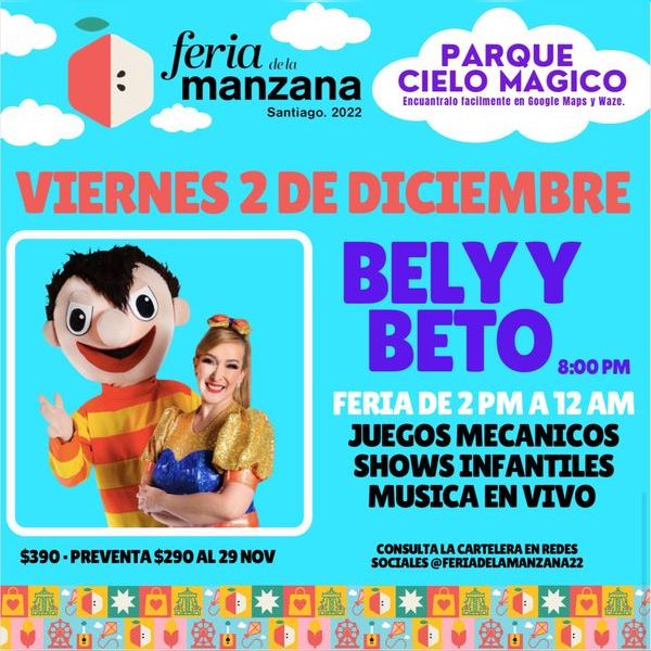 Ven y disfruta en familia de todos los juegos mecánicos las veces que desees, ademas de Shows Infantiles, Spots fotográficos, Food Trucks, Música en vivo, Juegos de destreza, Mercado emprendedor, Actividades didácticas, Área de picnic y muchas sorpresas más.. Síguenos en redes sociales para conocer la cartelera de cada dia de la semana y los horarios. @feriadelamanzana22