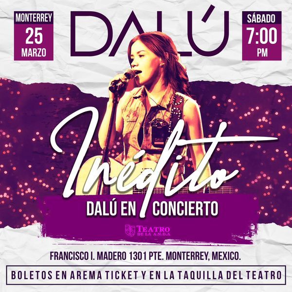 Inédito, es un concierto que recrea una atmósfera íntima a través de canciones representativas de Dalú, Garage Sessions, Niña complicada, Navidalú y Rojita; hasta maquetas completamente inéditas todas de la pluma y letra de Dalú. Inédito, es un show donde disfrutarás de una compilación musical única, nunca antes presentada al público en conciertos presenciales o eventos online.