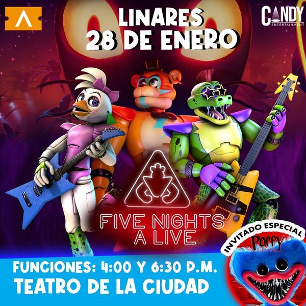 Llega este próximo 28 de Enero con dos funciones 4:00 y 6:30 p.m. Five Nights a Live.