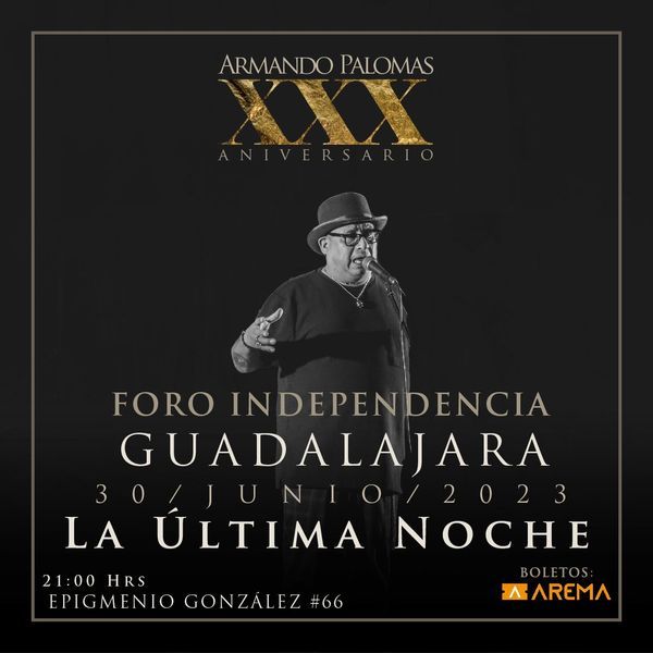 Gira: La Última Noche (La Gira de Las Golondrinas)Ciudad: Guadalajara Venue: Foro Independencia Fecha: Viernes 30 Junio 2023Domicilio: Epigmenio González 66Hora: 21:00 pm