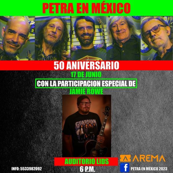 PETRA celebra su 50 aniversario y México será parte de esta celebración. Una de las bandas más importantes del movimiento CCM estará deleitando a su público mexicano el próximo 17 de junio y para abrir el concierto estará JAMIE ROWE de GUARDIAN, con un set acústico con canciones clásicas de Guardian. ¡No te lo puedes perder!