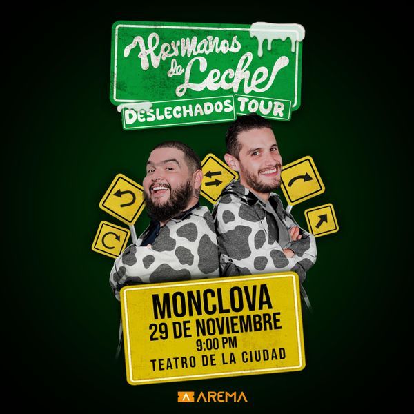 Los irreverentes y divertidos Hermanos de Leche, Iván Fematt “La Mole” y Adrián Marcelo, llegan a Monclova para ofrecer una noche llena de risas y momentos inolvidables. Este dúo explosivo, conocido por su humor único y auténtico, promete un espectáculo que desbordará la comedia y la energía que los ha llevado a ser de los favoritos en México.
