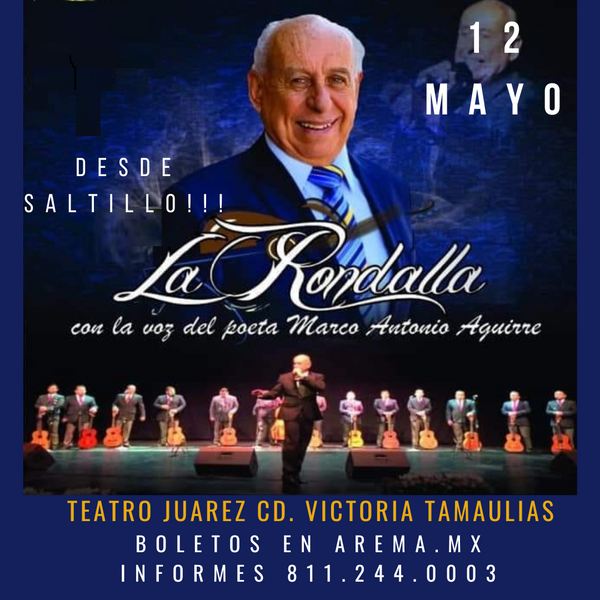 Desde Saltillo. ¡La Rondalla! Con la voz única del poeta Marco Antonio Aguirre, revive los grandes éxitos de amor, “Wendolyn”, “Historia de amor”, “Corazón de roca” y muchos más. Única función, el espectáculo de amor que todo México aplaude.