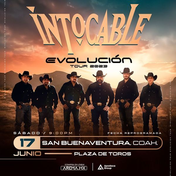 La empresa promotora del evento INTOCABLE EVOLUCION TOUR a decidido Cancelar este show, por lo que los compradores podrán solicitar su reembolso en https://arema.mx/reembolsar , A PARTIR DEL DIA 19 DE JUNIO, por medio de la pagina antes mencionada. Es importante indicar correctamente su número de operación y la forma de pago para que la plataforma reconozca su compra. Les recordamos que AREMA Ticket no realiza actividades de programación, promoción ni cancelación de eventos, pero nuestros clientes pueden estar seguros que recuperarán su dinero, es parte del servicio que pagaron al comprar en nuestra plataforma.